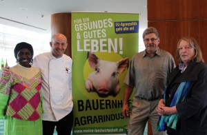 Das Pressegespräch am 25. Juni 2012 gab Journalistinnen und Journalisten die Möglichkeit, sich ein eingehendes Bild über die Situation von Bäuerinnen und Bauern in Afrika, USA und Europa zu machen, die mit den Auswirkungen der industriellen und globalisierten Landwirtschaft täglich konfrontiert werden. Hintergrundinformationen zur Reform der Gemeinsamen EU-Agrarpolitik und ihren Einfluss auf Entwicklungs- und Industrieländer rundeten die Statements der Bäuerinnen und Bauern ab. Darüber hinaus wurden die Aktivitäten der Kampagne „Meine Landwirtschaft“ vorgestellt, deren Zielsetzung eine nachhaltige, faire und soziale Neuausrichtung der EU-Agrarpolitik ist.